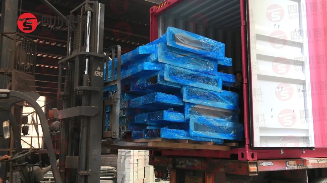 在交付現(xiàn)場,鍋爐、風(fēng)管等貨物被緩緩送進(jìn)集裝箱