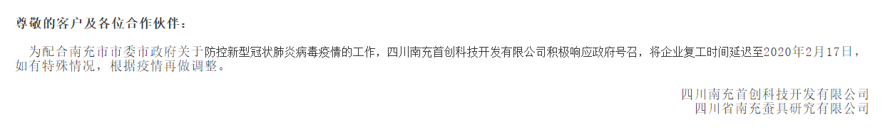 南充首創(chuàng)科技疫情期間復(fù)工延期通知